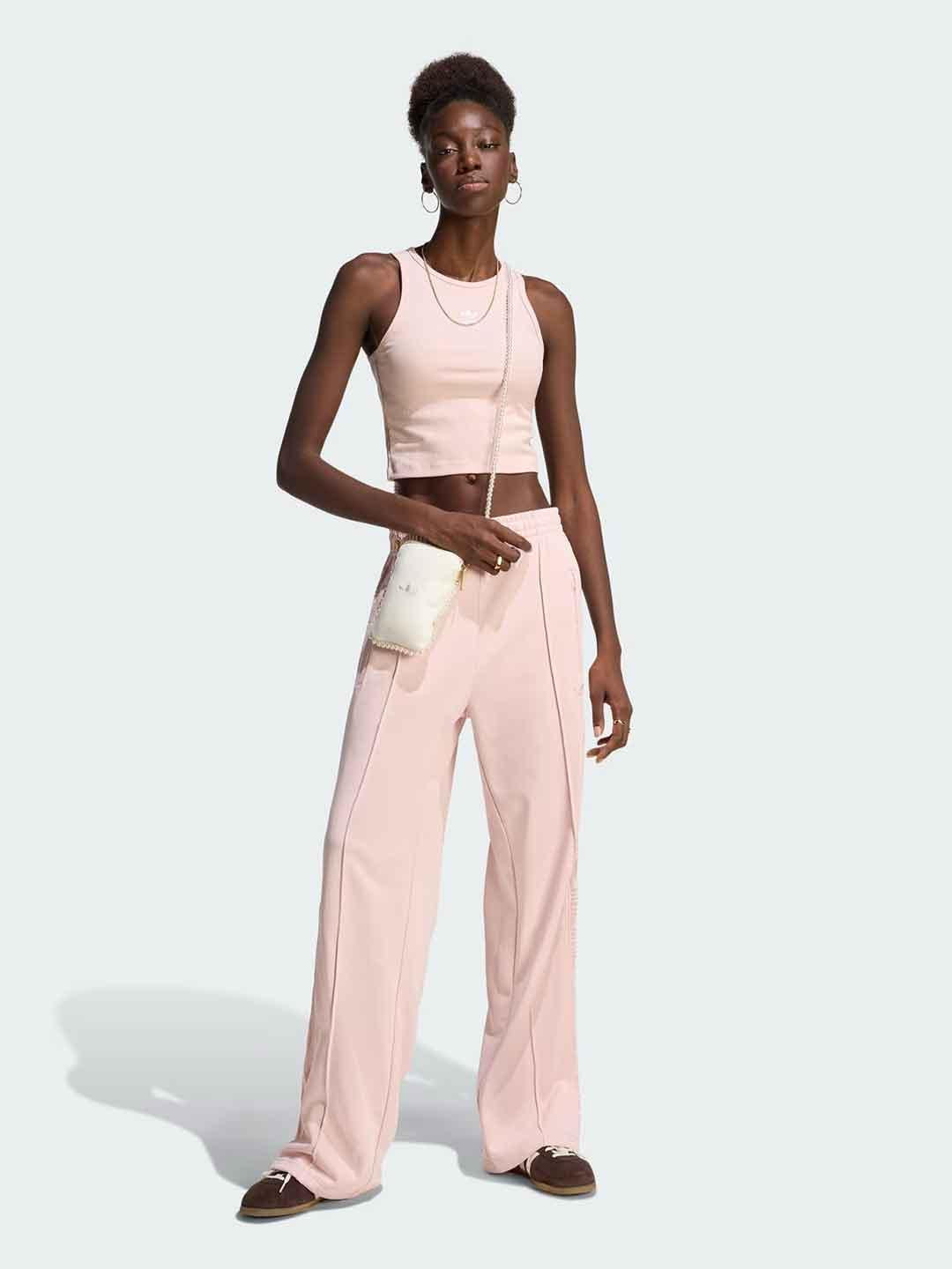 Adidas Firebird pantalone rosa con banda traforata