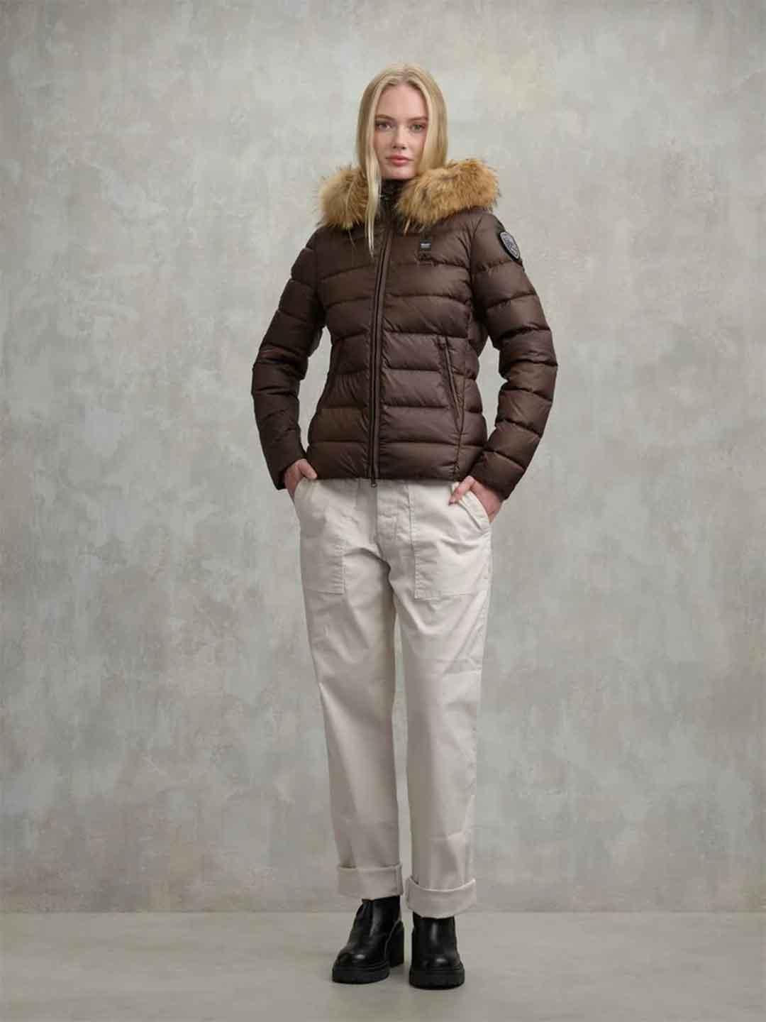 Blauer Arcadia piumino marrone cappuccio con pelliccia