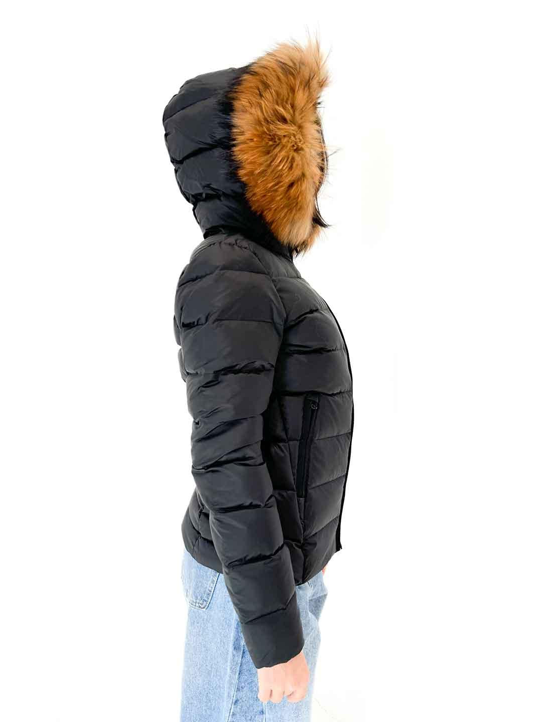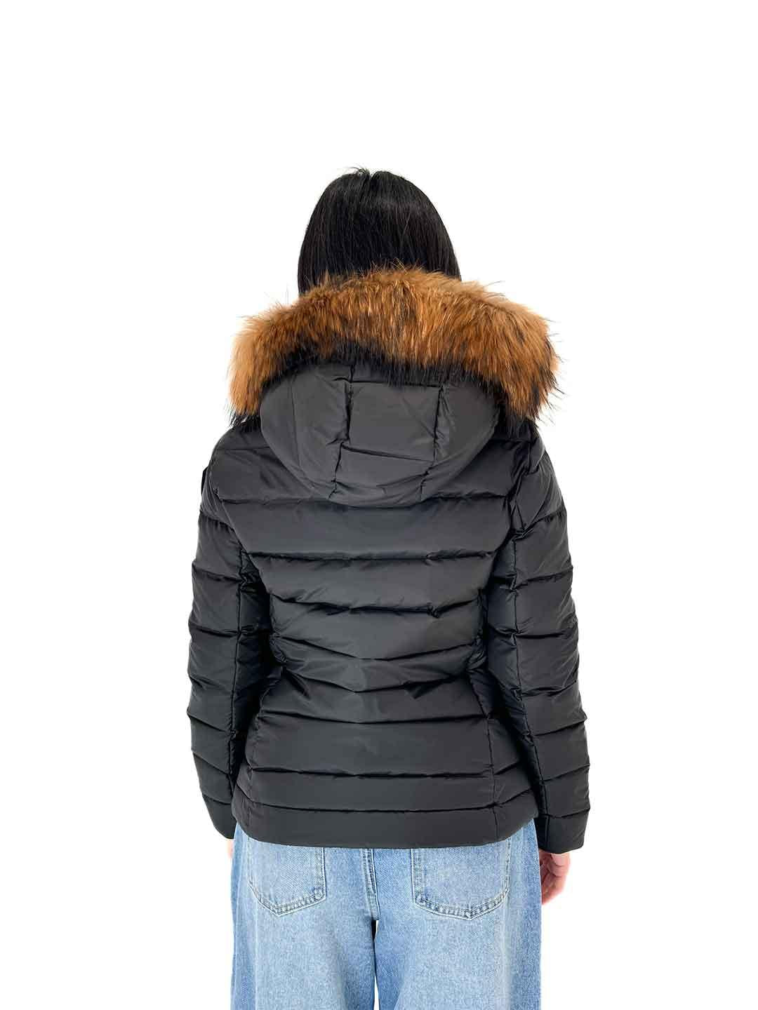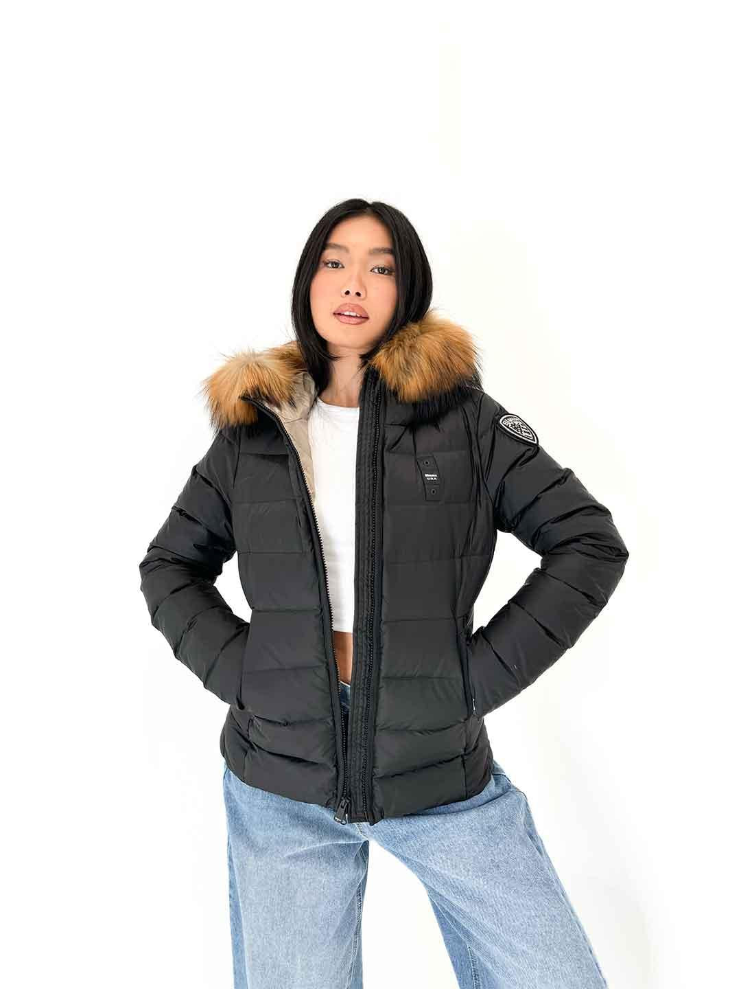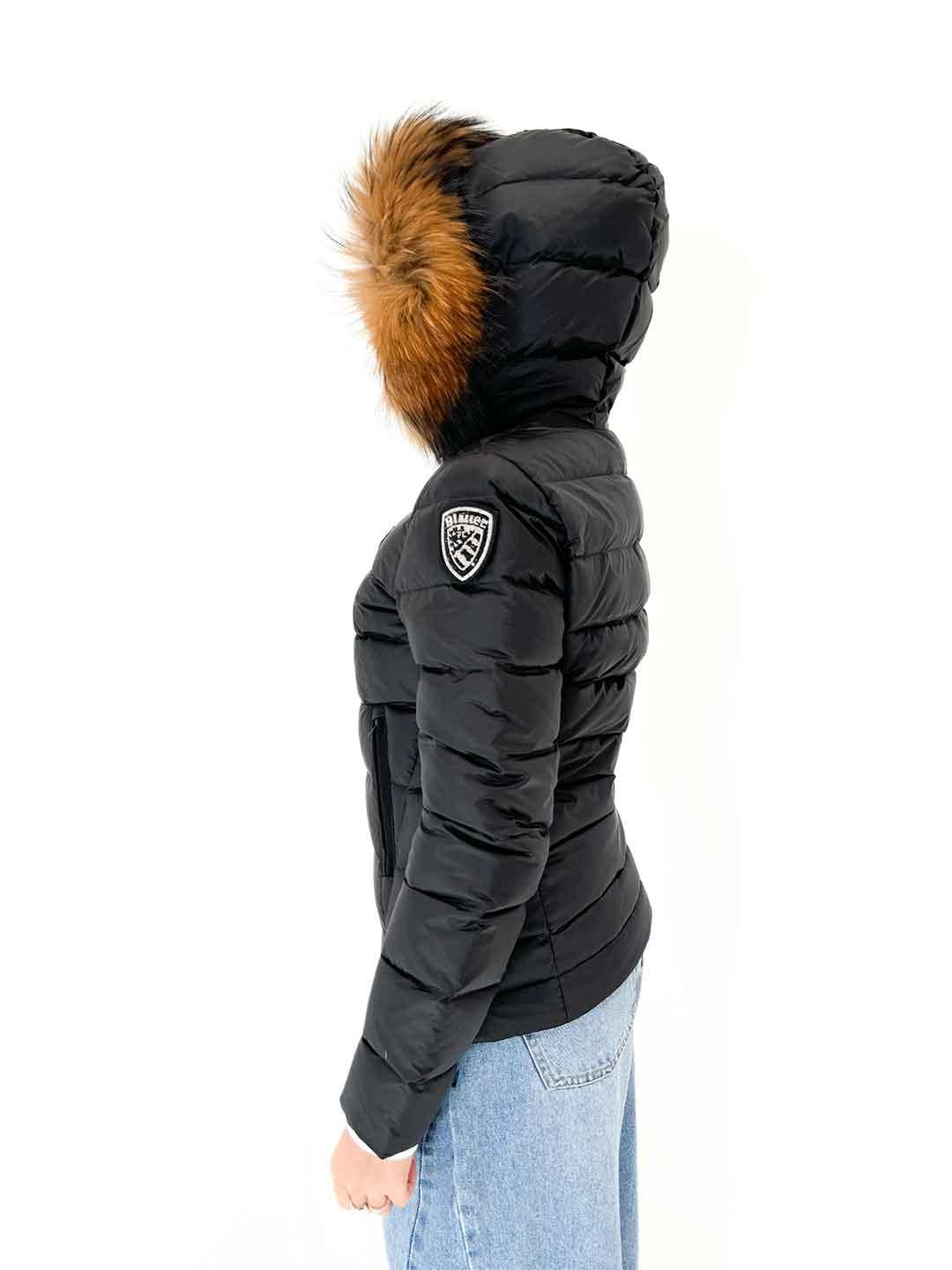 Blauer Arcadia piumino nero cappuccio con pelliccia