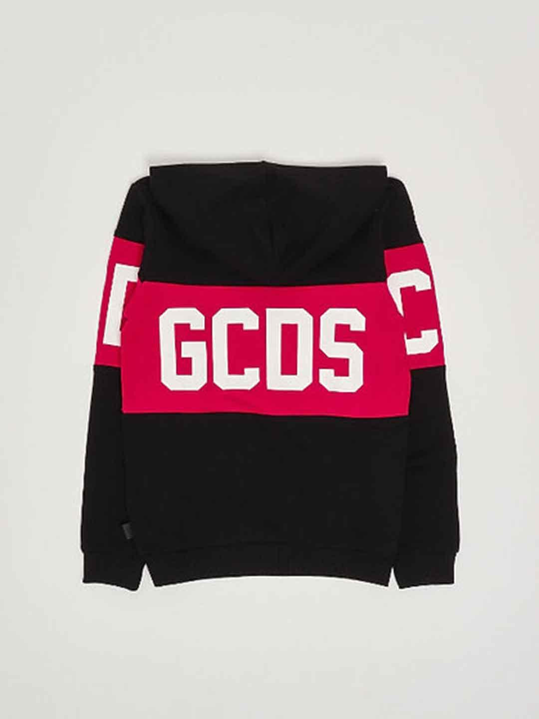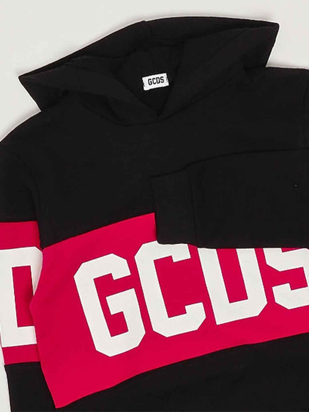 GCDS felpa kids nero con cappuccio e banda logo