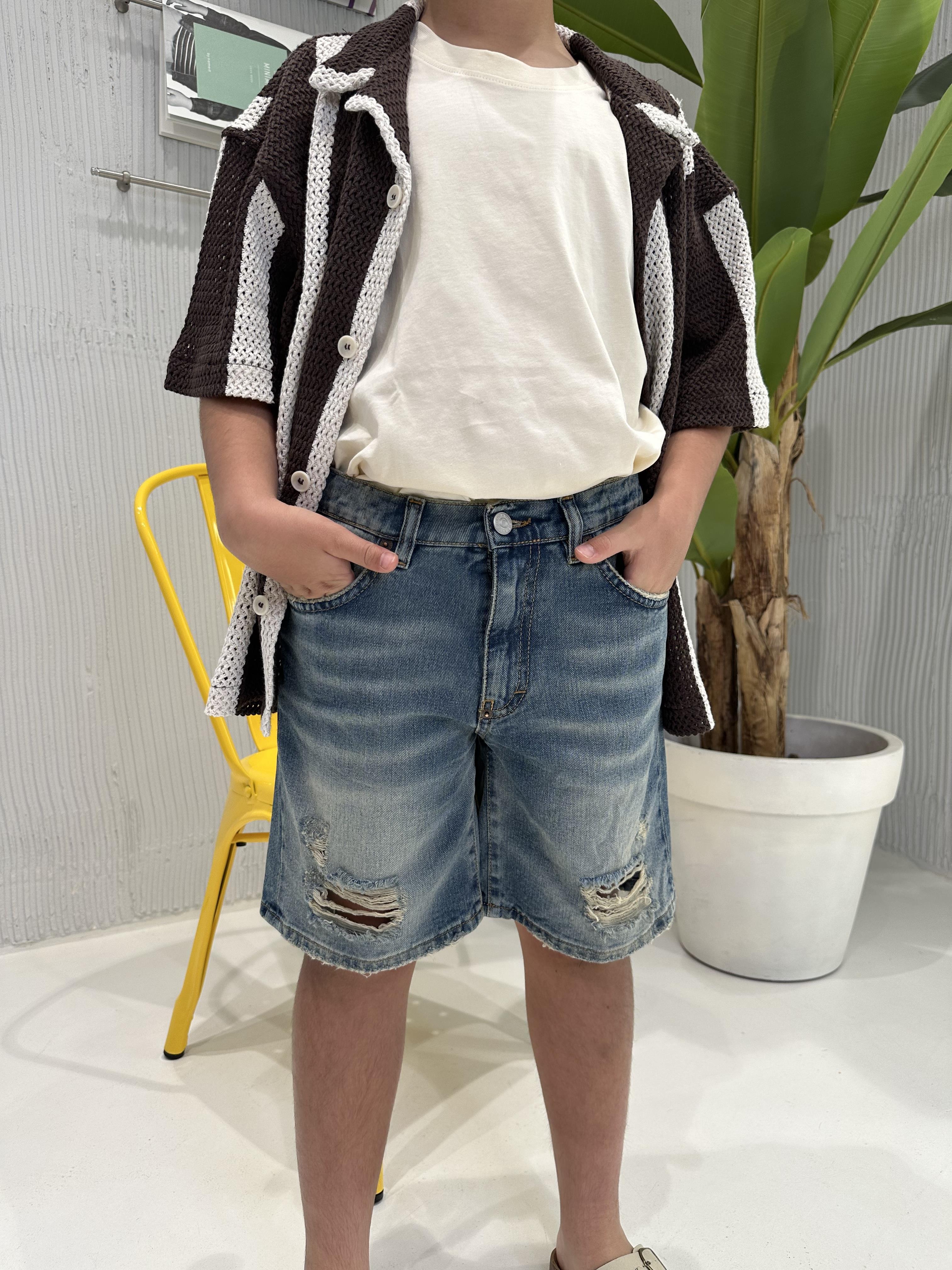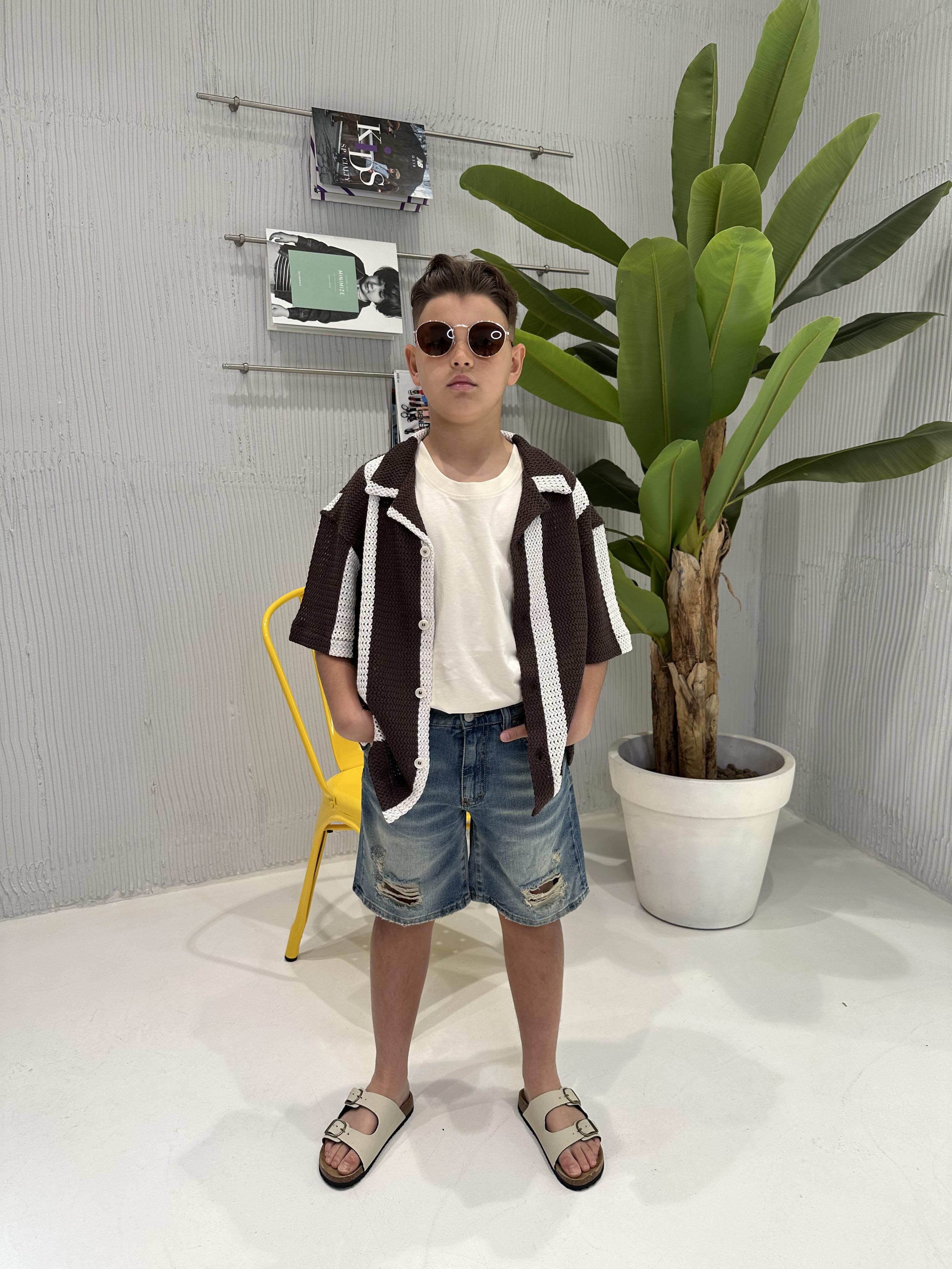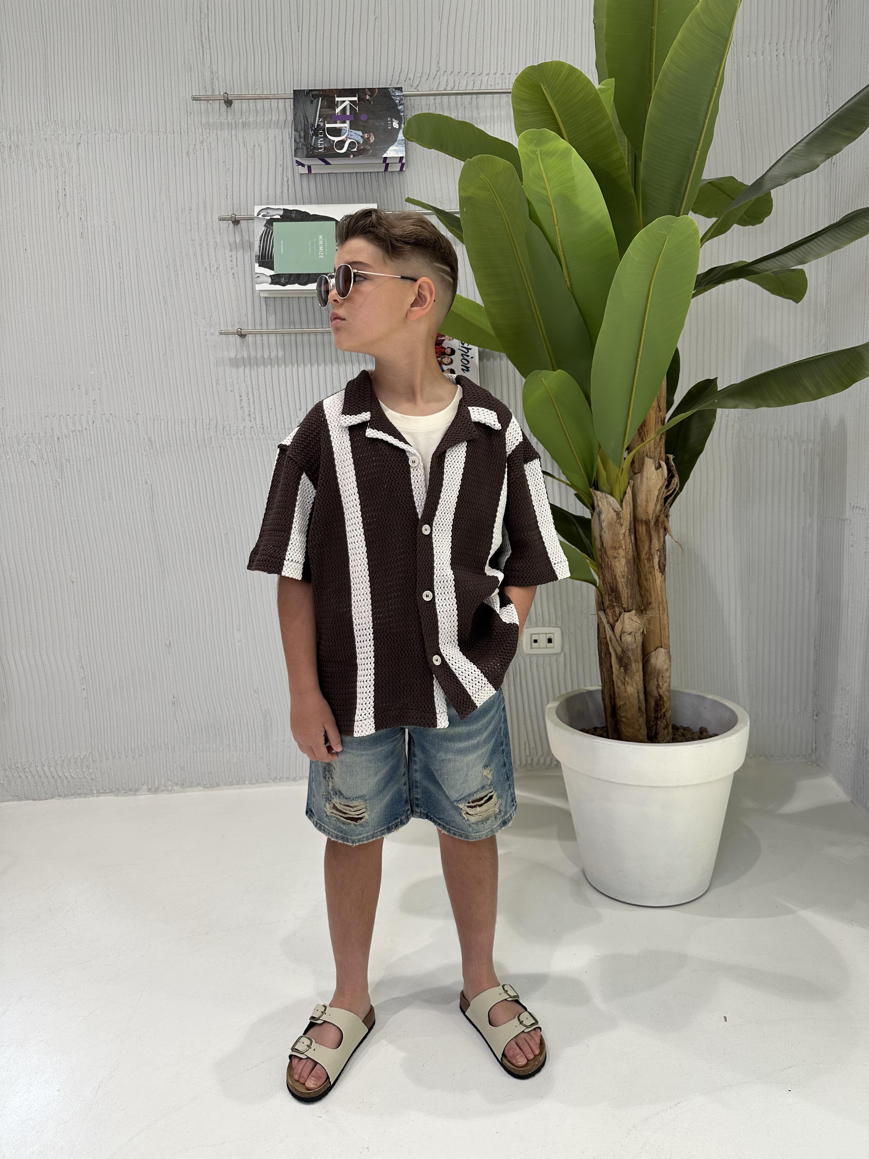 I'M Brian camicia kids marrone a righe traforata