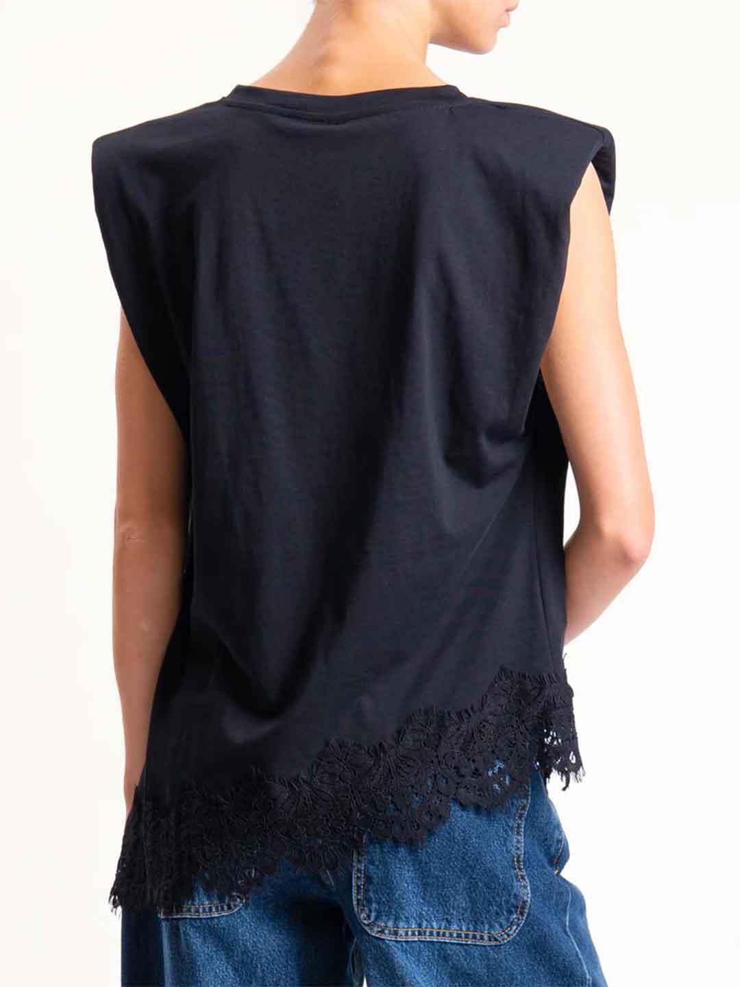Tensione In t-shirt nero orlo in pizzo