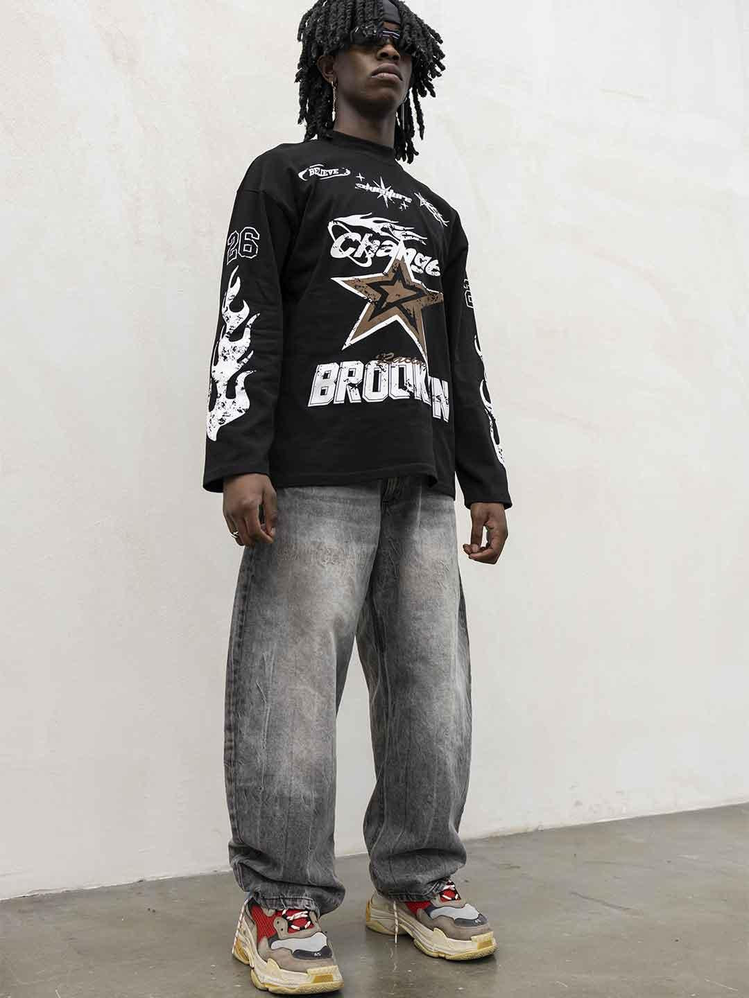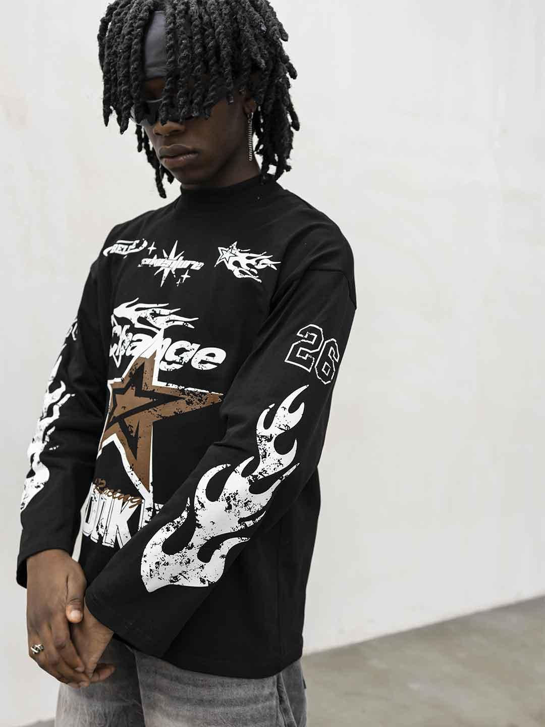 Grafiche sul davanti e lungo le maniche
