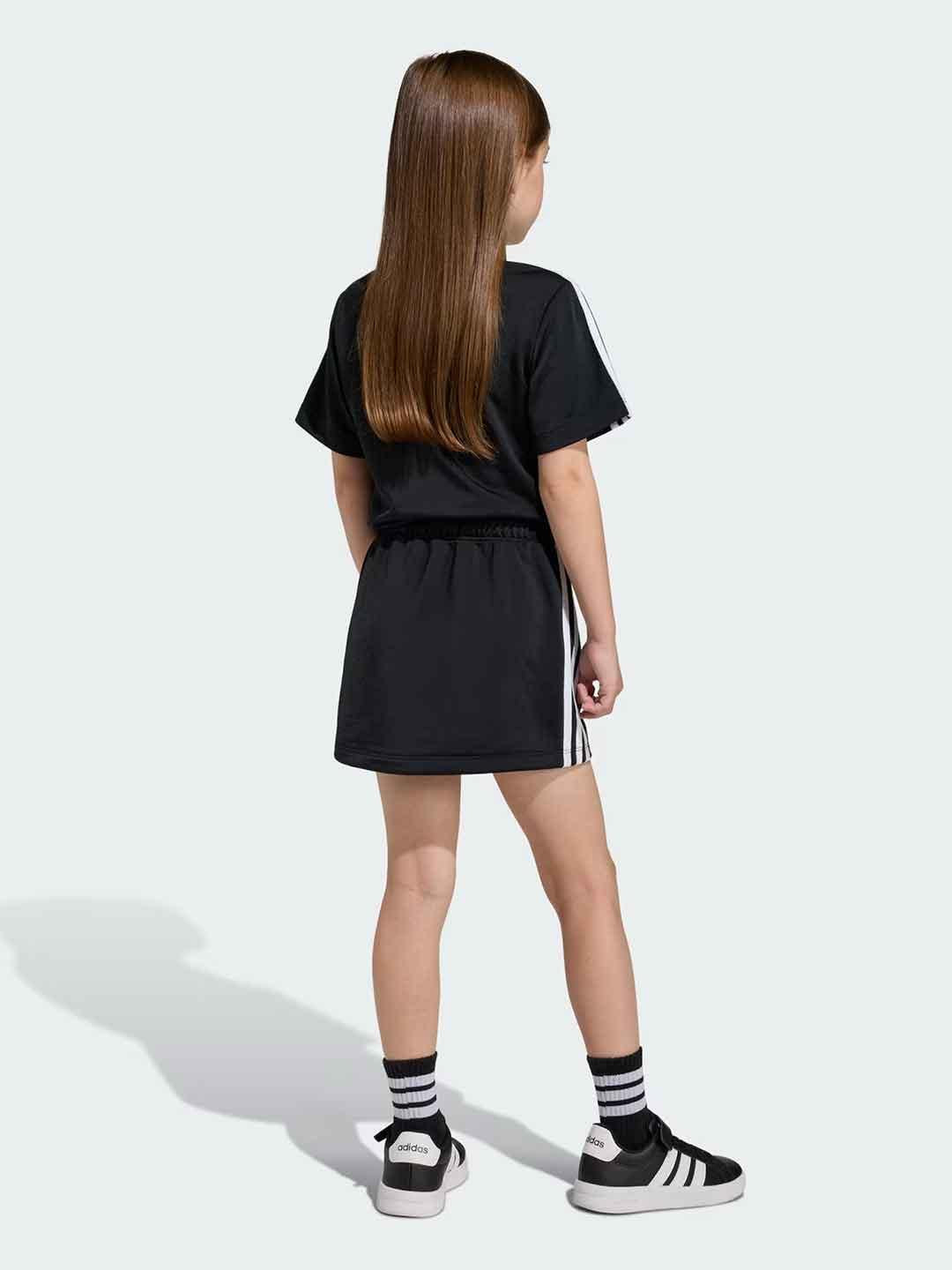 Iconiche bande laterali sulla gonna e lungo le maniche