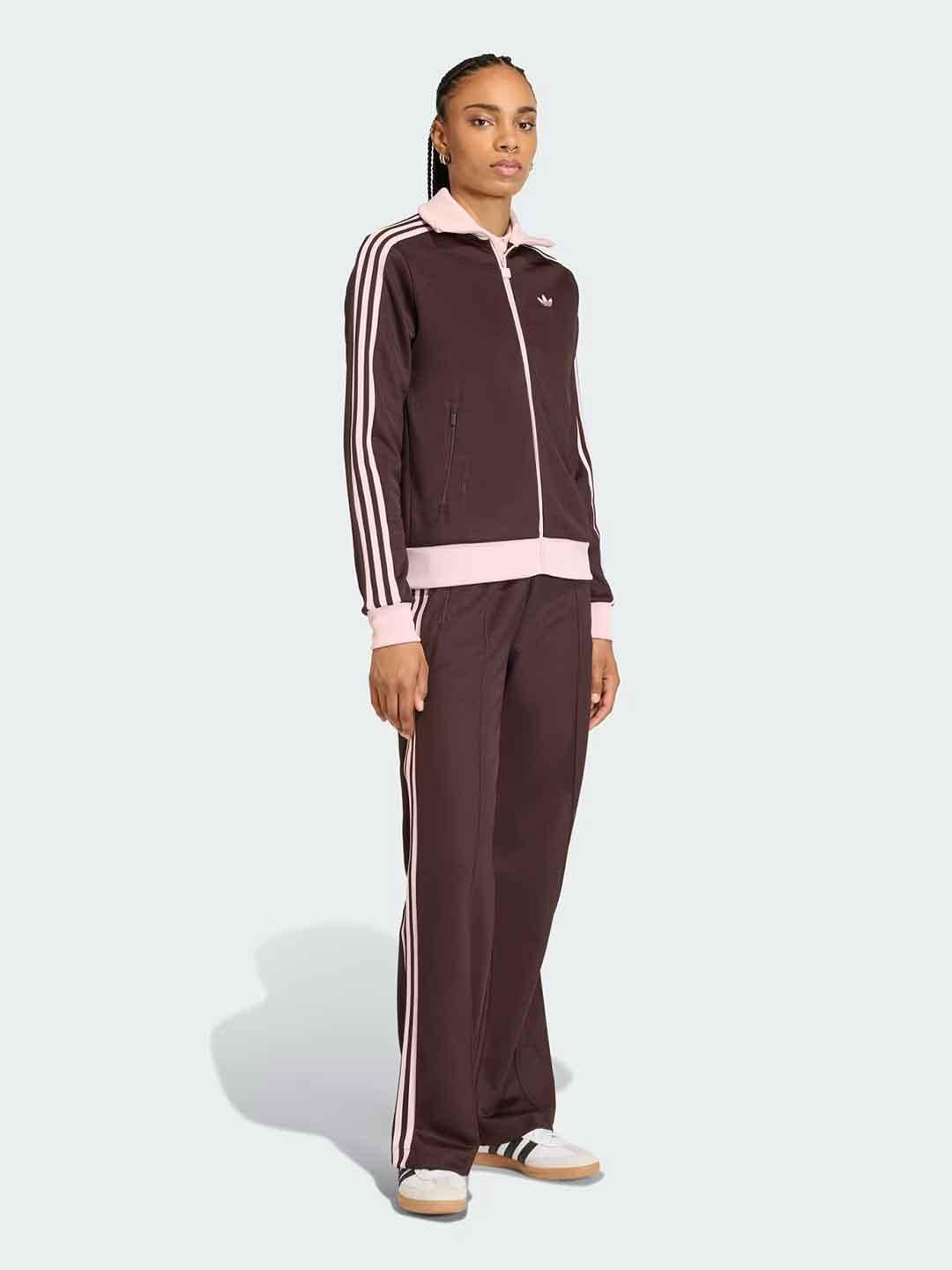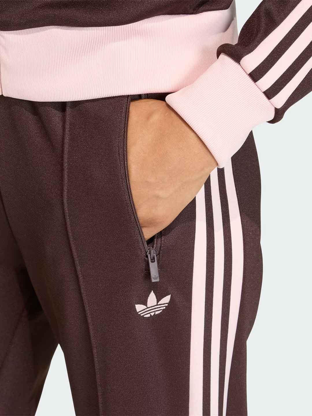 Adidas pantaloni marrone con bande rosa