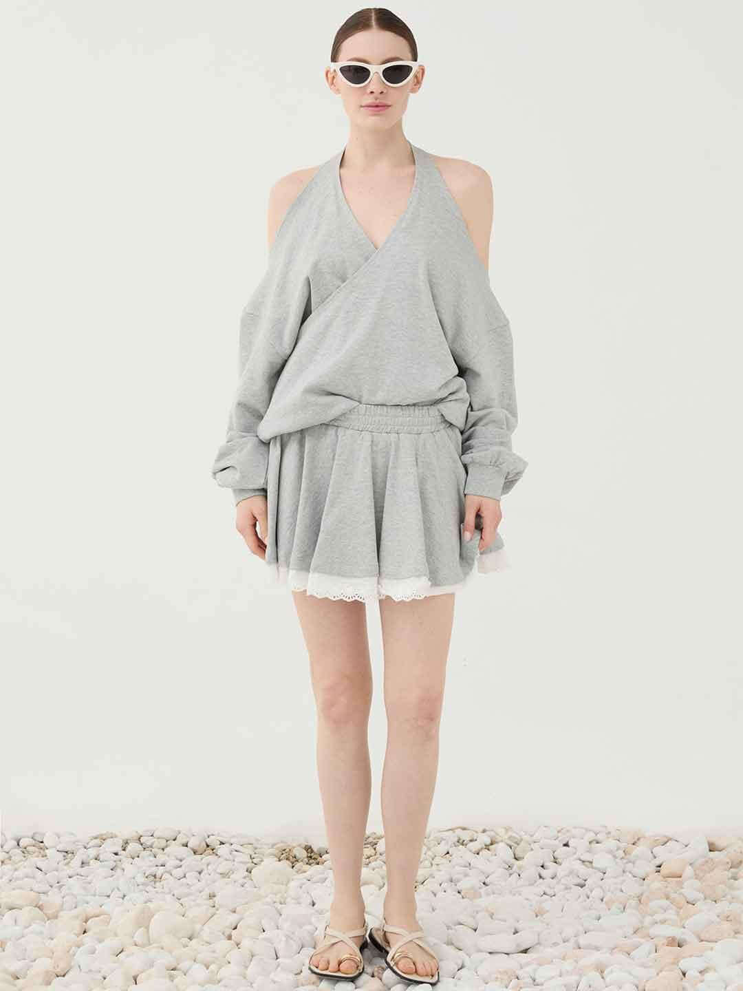Eleh felpa grigio con scollo incorciato