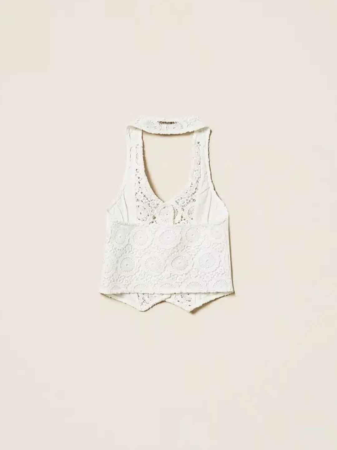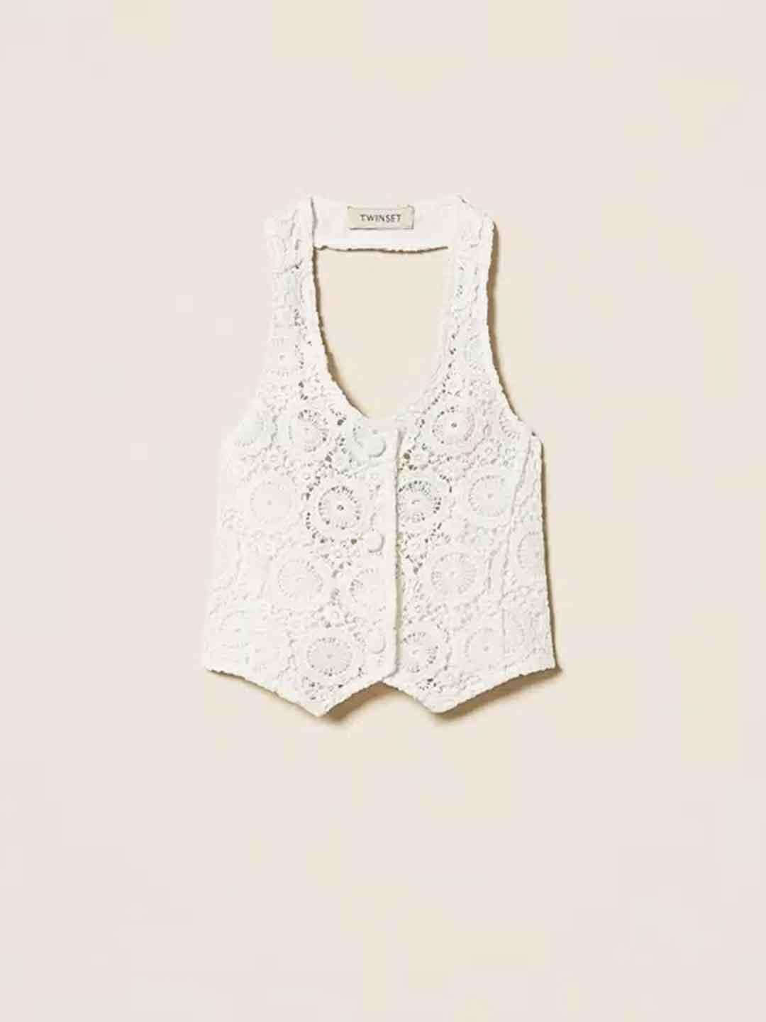 Twinset gilet kids bianco in macramè