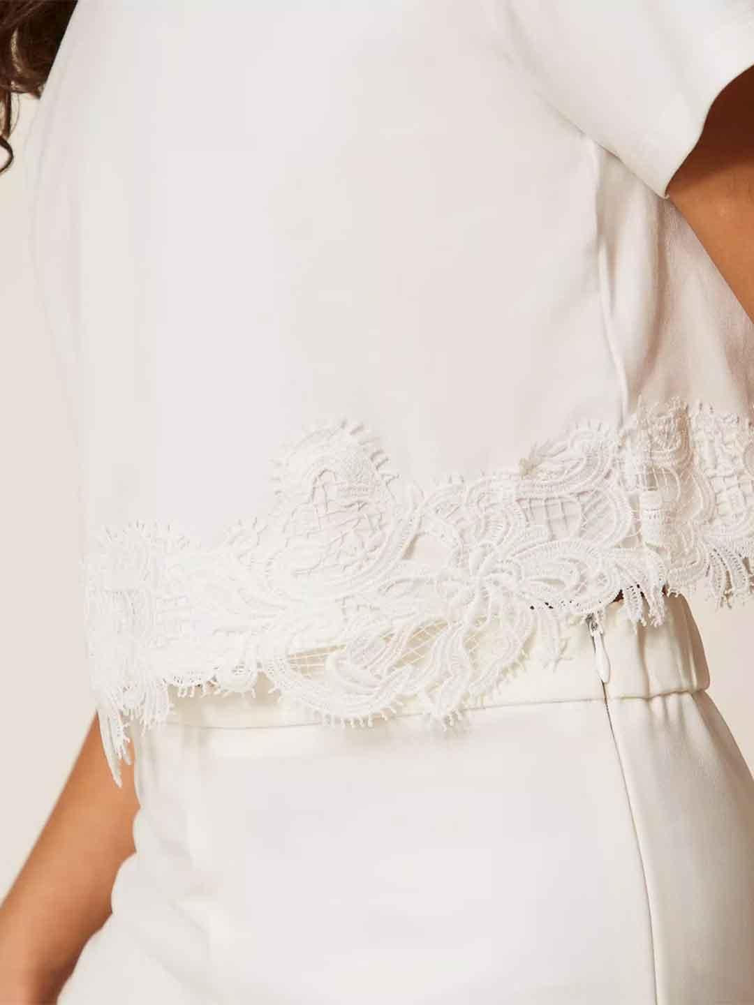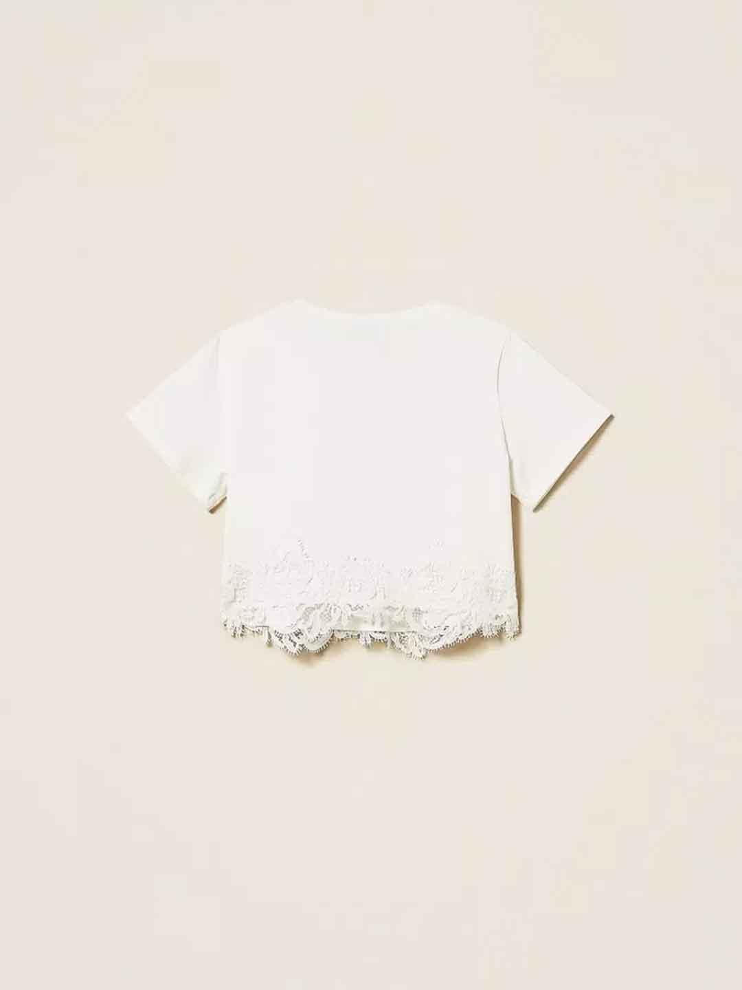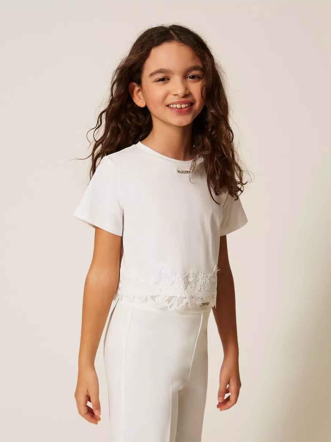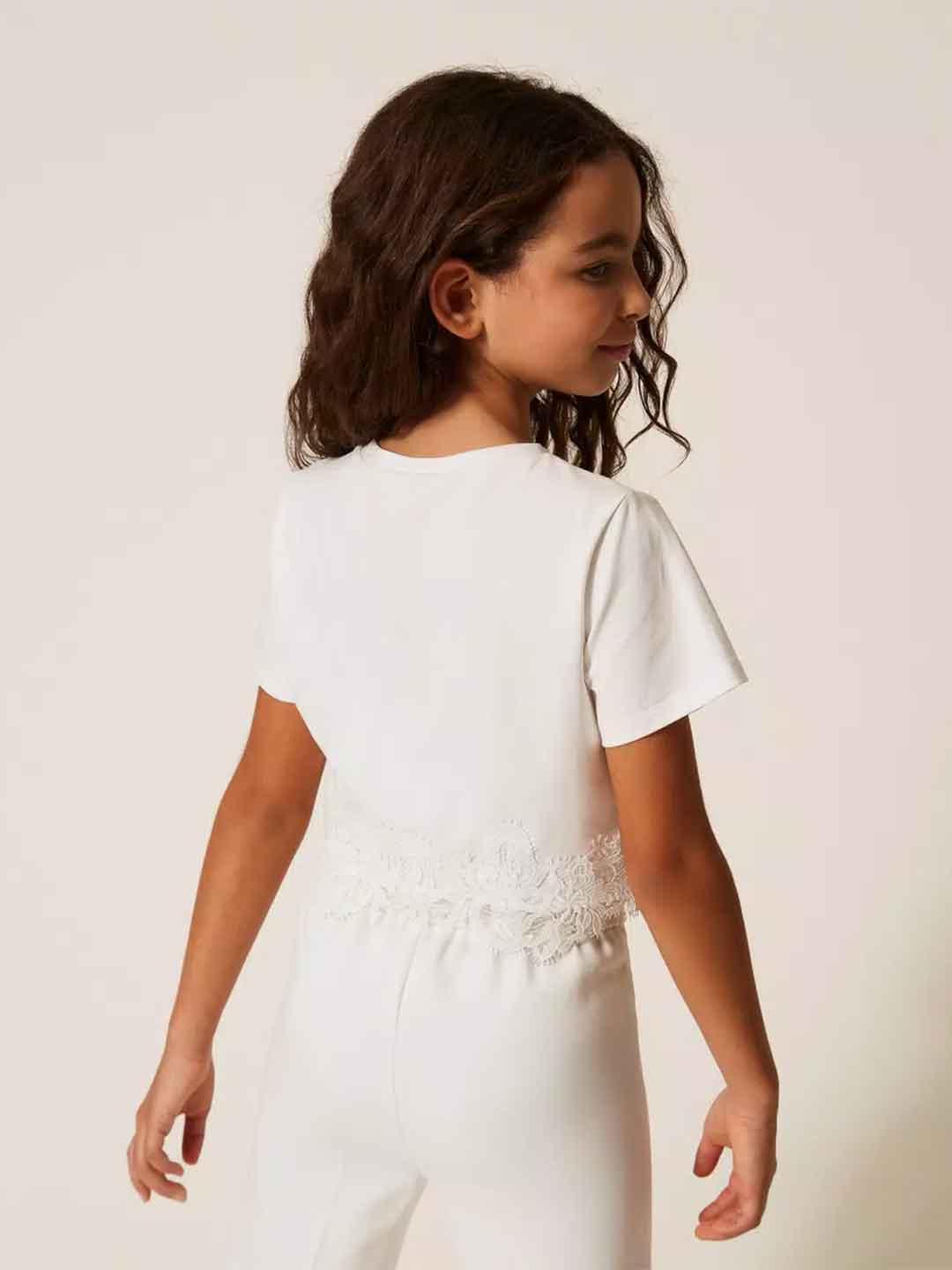 Twinset t-shirt kids bianco crop con pizzo
